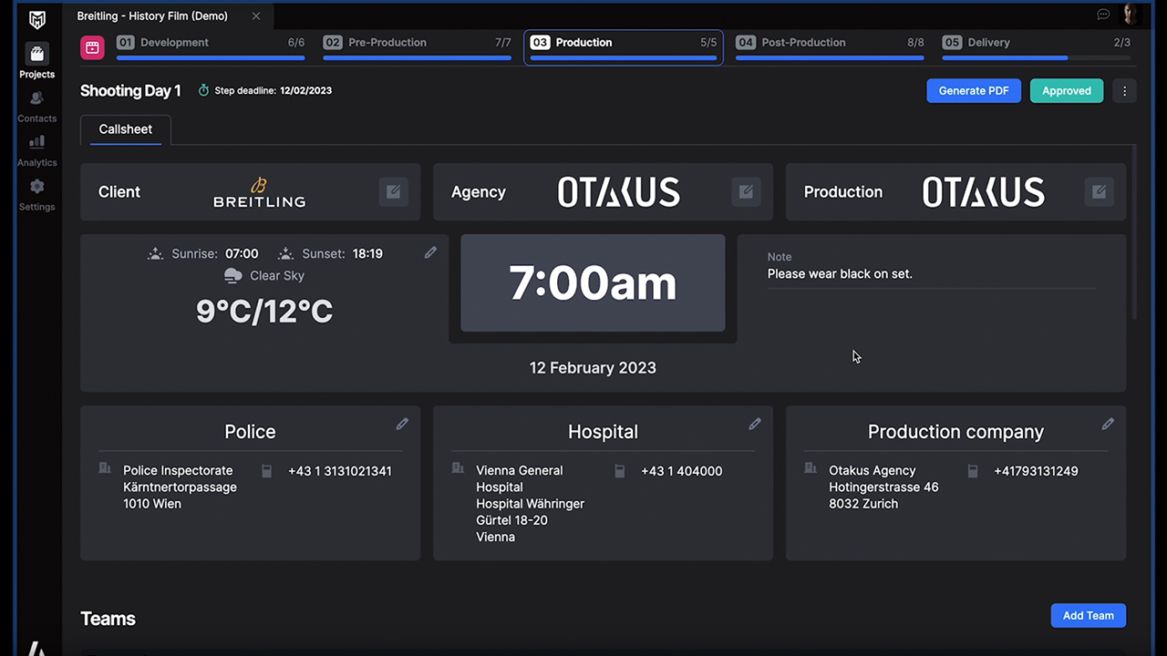It’s worth mentioning that it’s young software and only a starting point for this tool. At the moment, they have around 4000 people testing the application and providing them with feedback. Xaver Walser says they take all input seriously and have a big roadmap ahead. For example, developers want to add an extensive and structured briefing document or offer the possibility to upload dailies beside each day’s call sheet, just to give you an idea of the upcoming features.